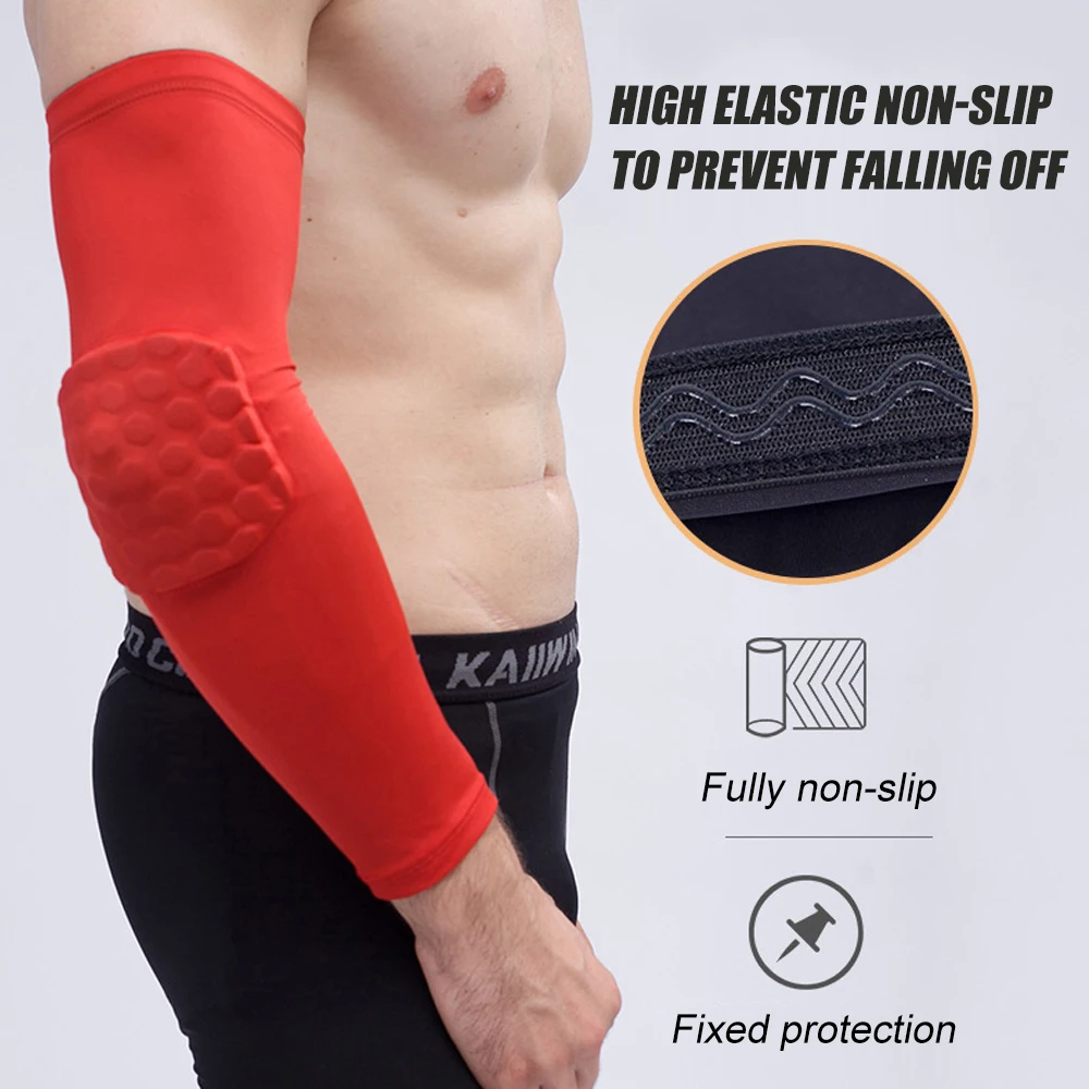 Versatile Use: The Adult Teen Honeycomb Elbow Support Training Brace Sport Protective Gear Basketball Volleyball Elastic Breathable Arm Sleeve Pads are perfect for anyone looking to protect their elbows during sports activities. Whether you’re playing basketball, volleyball, or engaging in other high-impact sports, these arm sleeves offer the support and cushioning you need.