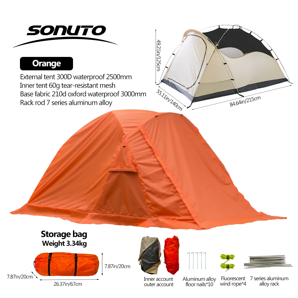 The Ultra-Light 2-3 Person Hiking Tent is designed for adventurers who need a reliable, lightweight, and snowproof shelter. Featuring a double-layer aluminum frame and durable Oxford fabric, this tent ensures stability and weather resistance. Its compact design makes it easy to carry on your hiking trips, while the spacious interior comfortably accommodates 2-3 people. Ideal for camping, hiking, and other outdoor activities, this tent is a must-have for any outdoor enthusiast.